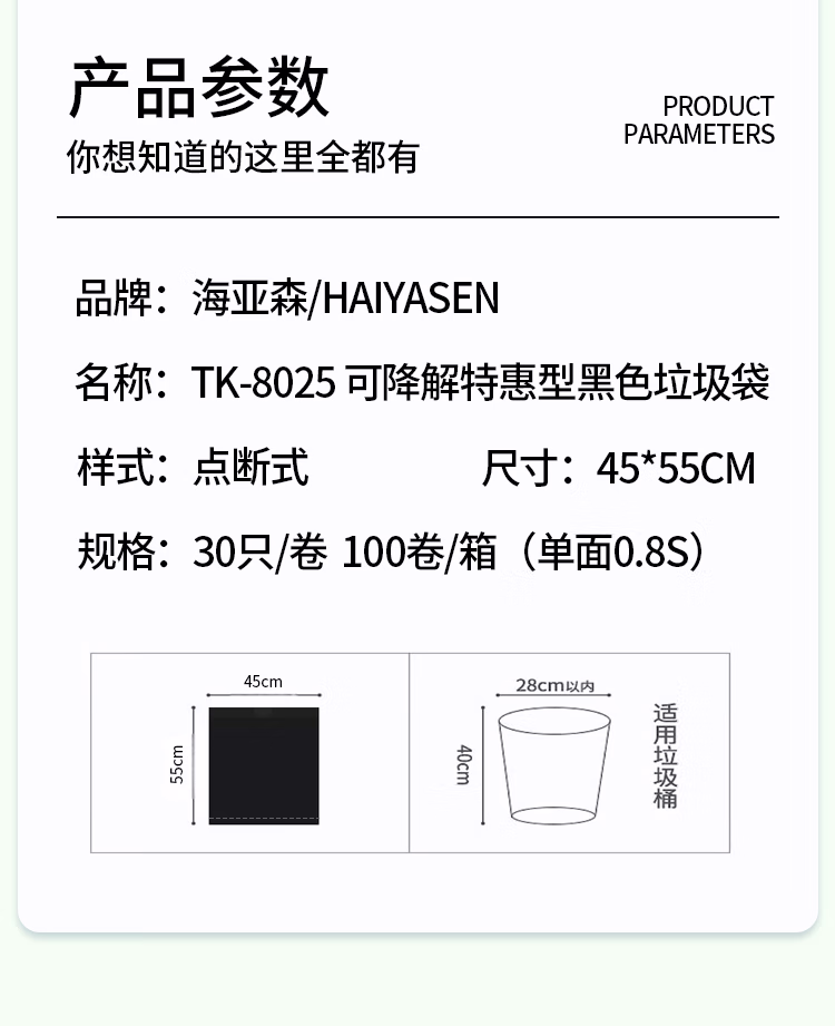 海亚森 TK -8028 45cm*55cm 30只/卷 垃圾袋 (计价单位:包) 黑色 5卷起订