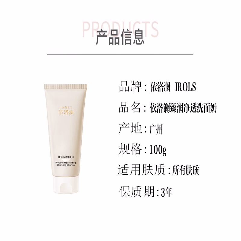 • 商品名称:依洛澜臻润净透洗面奶100g(单位:支) 米黄色