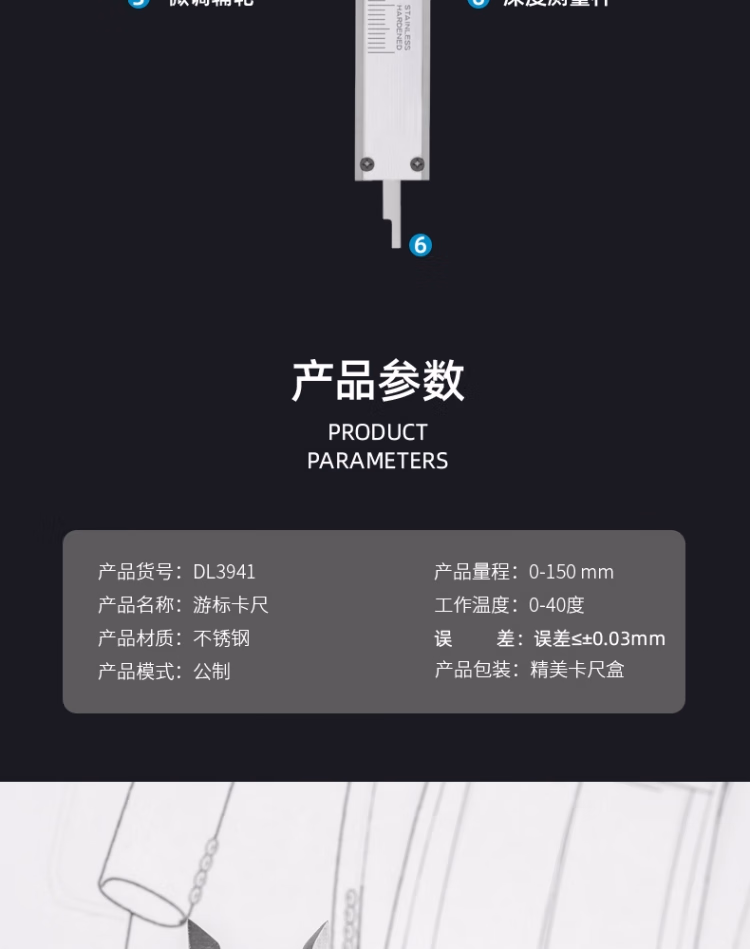 得力(deli) DL3941 数显表 150mm 游标卡尺 1.00 只/把 (计价单位:把)
