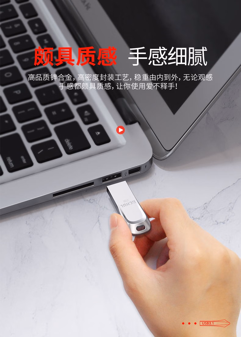 杰储(GCHUL) U130 旭日系列 64G USB3.1 防水防震高速U盘/优盘 (计价单位:个) 银色