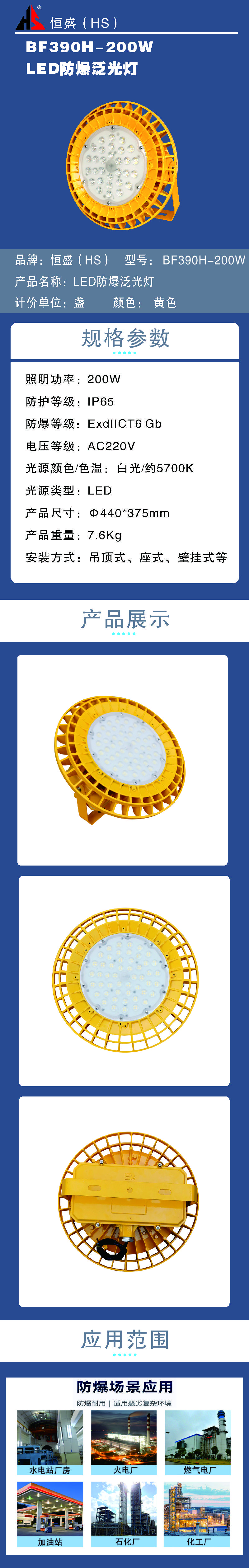 恒盛(HS) BF390H-200W 200W IP65 ExdIICT6 Gb AC220V 白光/约5700K LED LED防爆泛光灯 (计价单位:盏) 黄色