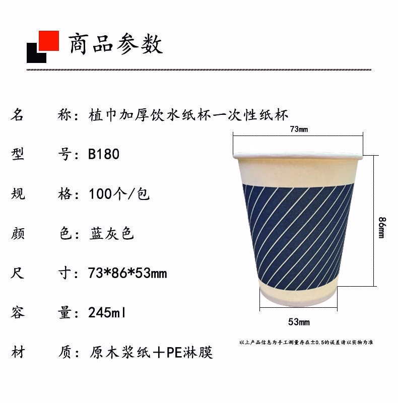 植巾 B180 245ml 加厚饮水纸杯 一次性纸杯 100.00 个/包 (计价单位:包) 蓝灰色