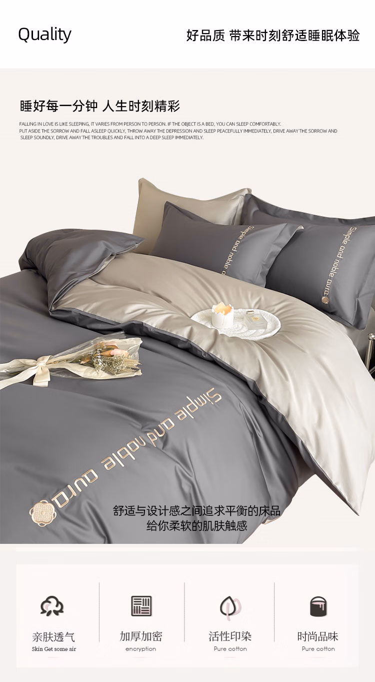 伊伊爱 TJ0HJC2301989 /200*230cm 伯格高精密纯棉四件套 (计价单位:套) 迪灰拼浅灰