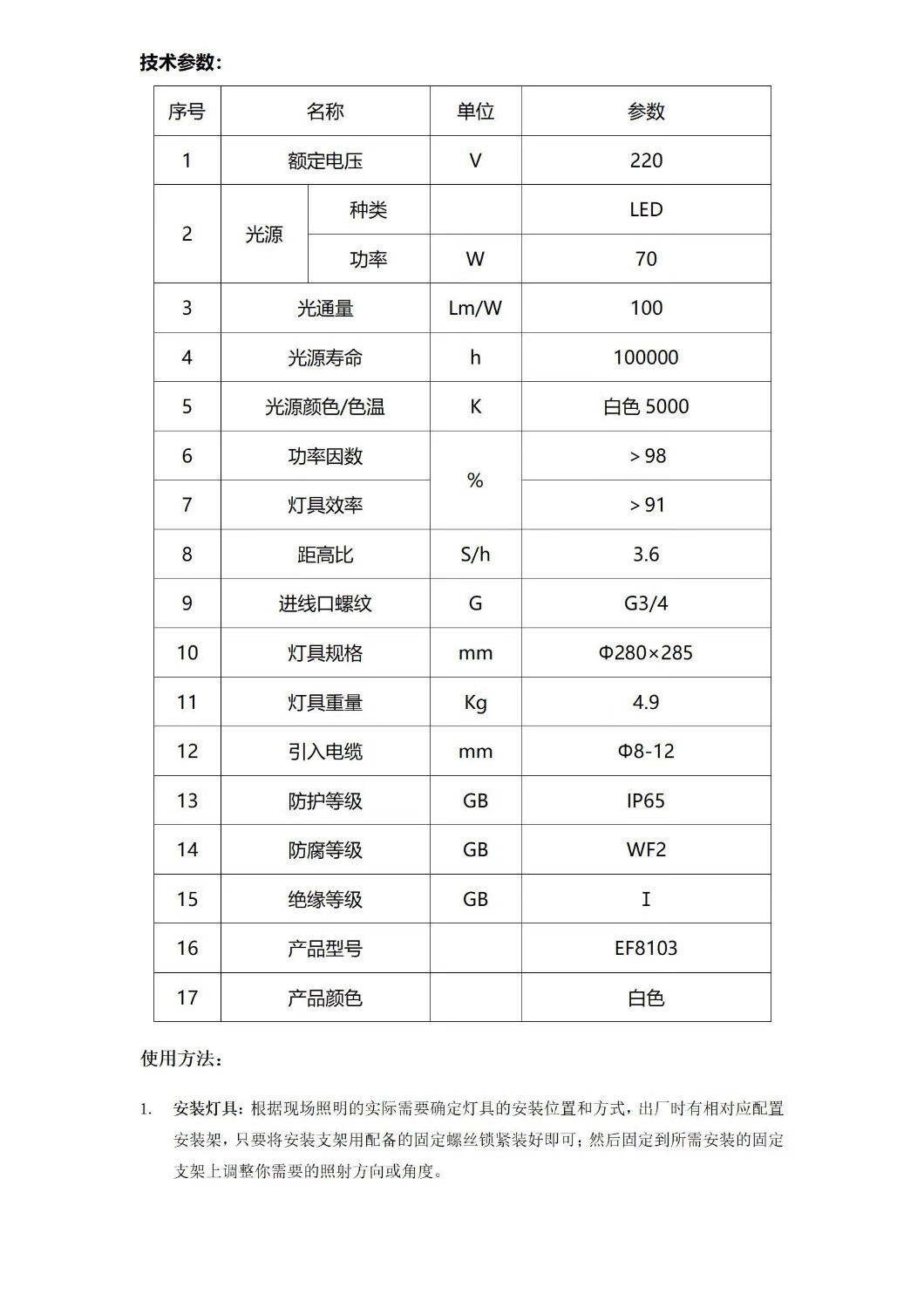 熠飞(EEEFEI) EF8103 70W IP65 220V 白色5000K LED 防眩平台泛光灯 1.00 个/套 (计价单位:套) 灰色