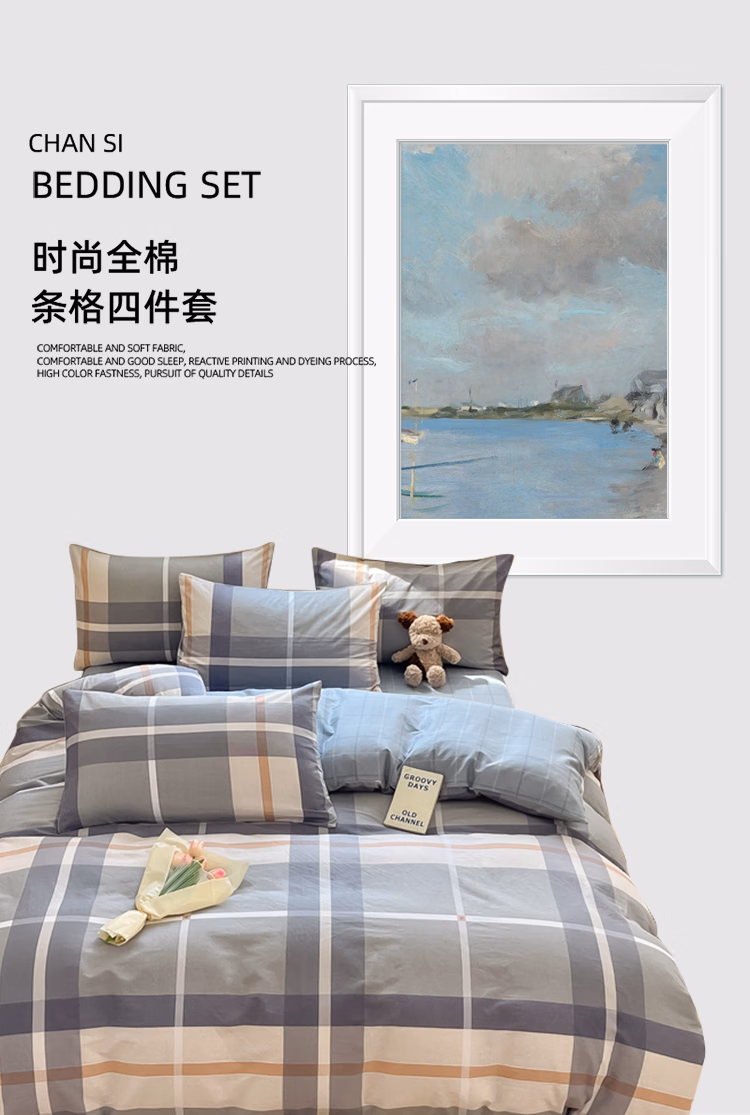 • 商品名称:婵思(CHANSI)时尚全棉条格四件套 拿破仑 200*230cm/CNH0230186