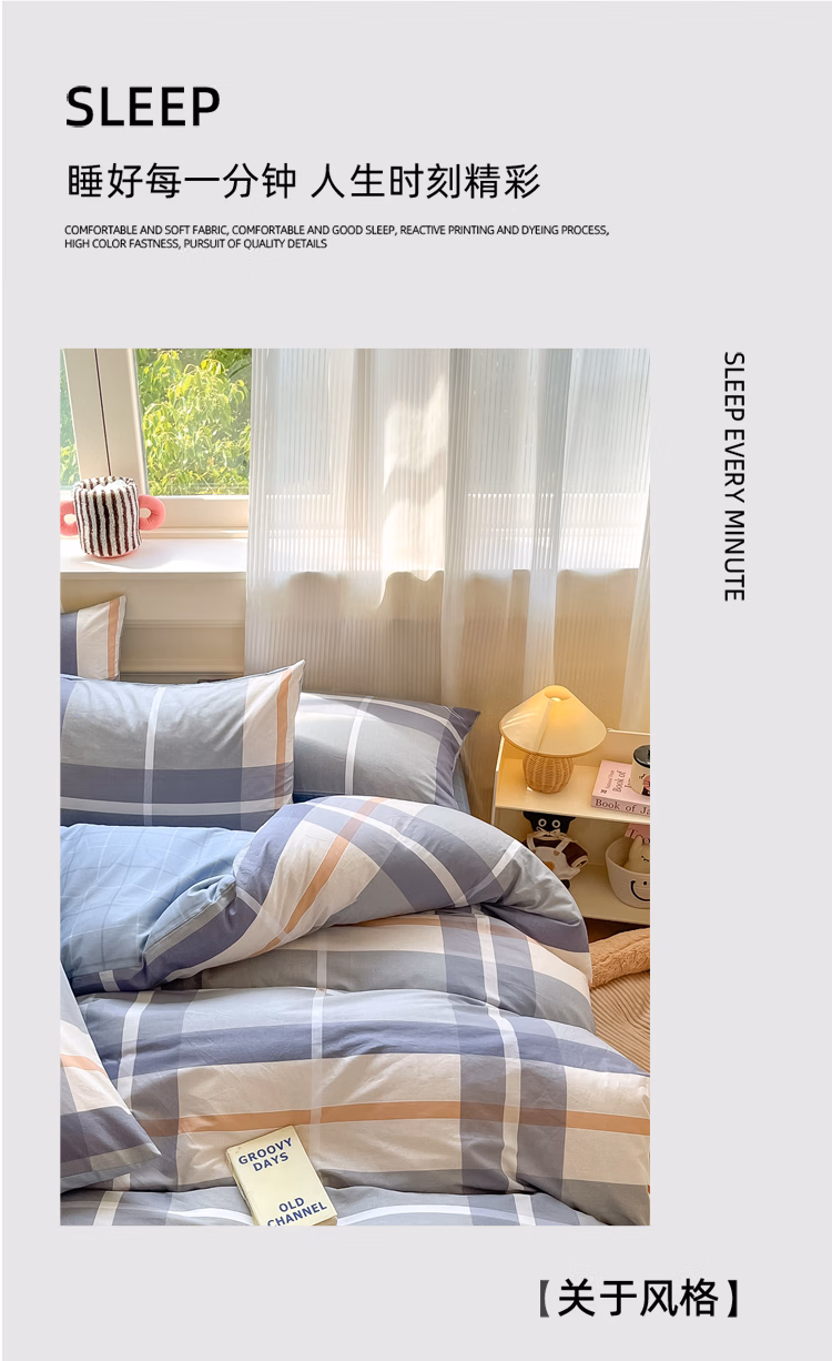 婵思 CNH0230186 200*230cm 时尚全棉条格四件套 (计价单位:套) 拿破仑