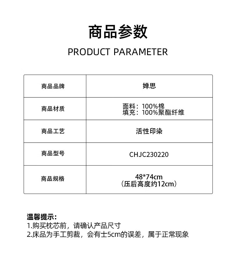 婵思 CHJC230220 48*74cm 净芯护颈中枕 1.00 件/个 (计价单位:个) 白色