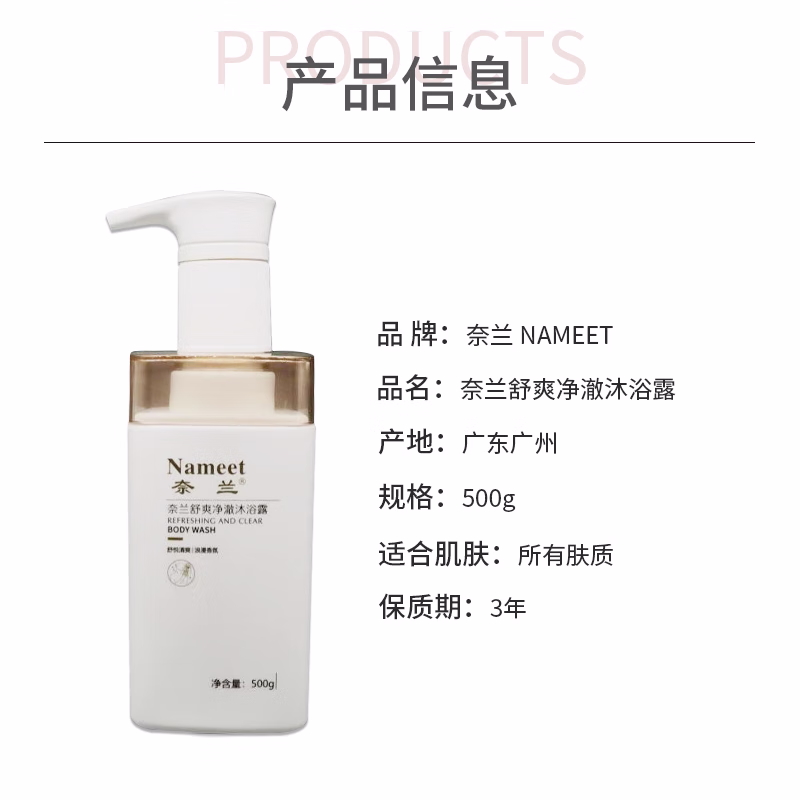 • 商品名称:奈兰NAMEET奈兰舒爽净澈沐浴露