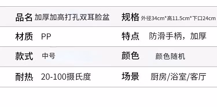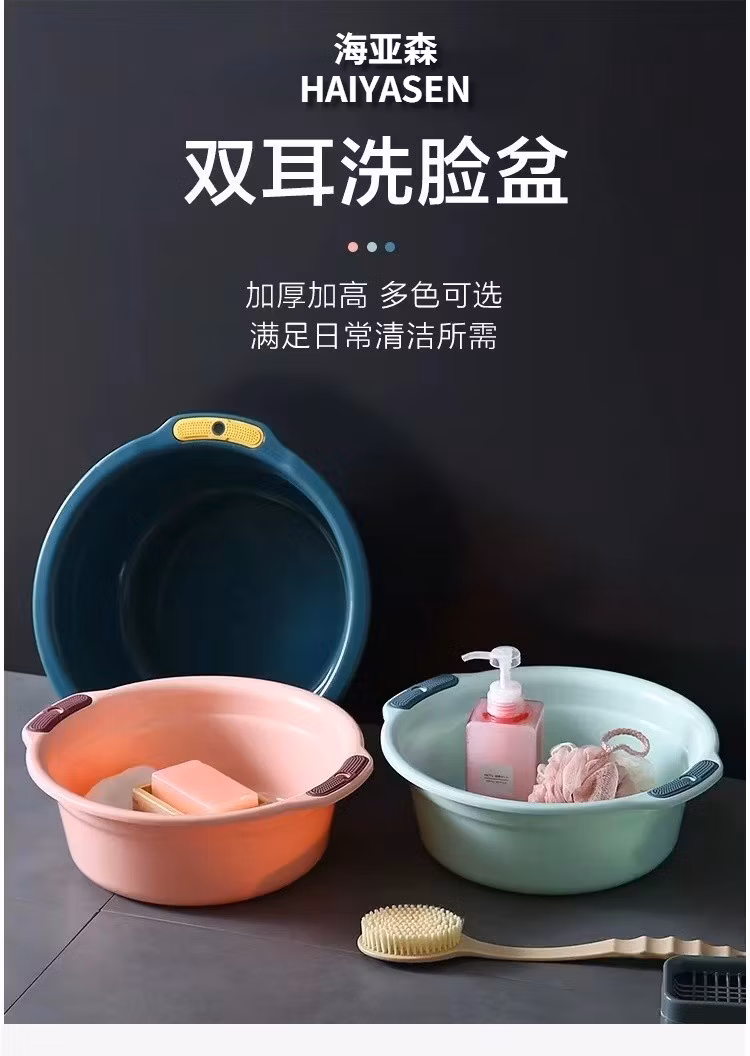 • 商品名称:海亚森TK-5007加厚加高双耳塑料脸盆口径34cm