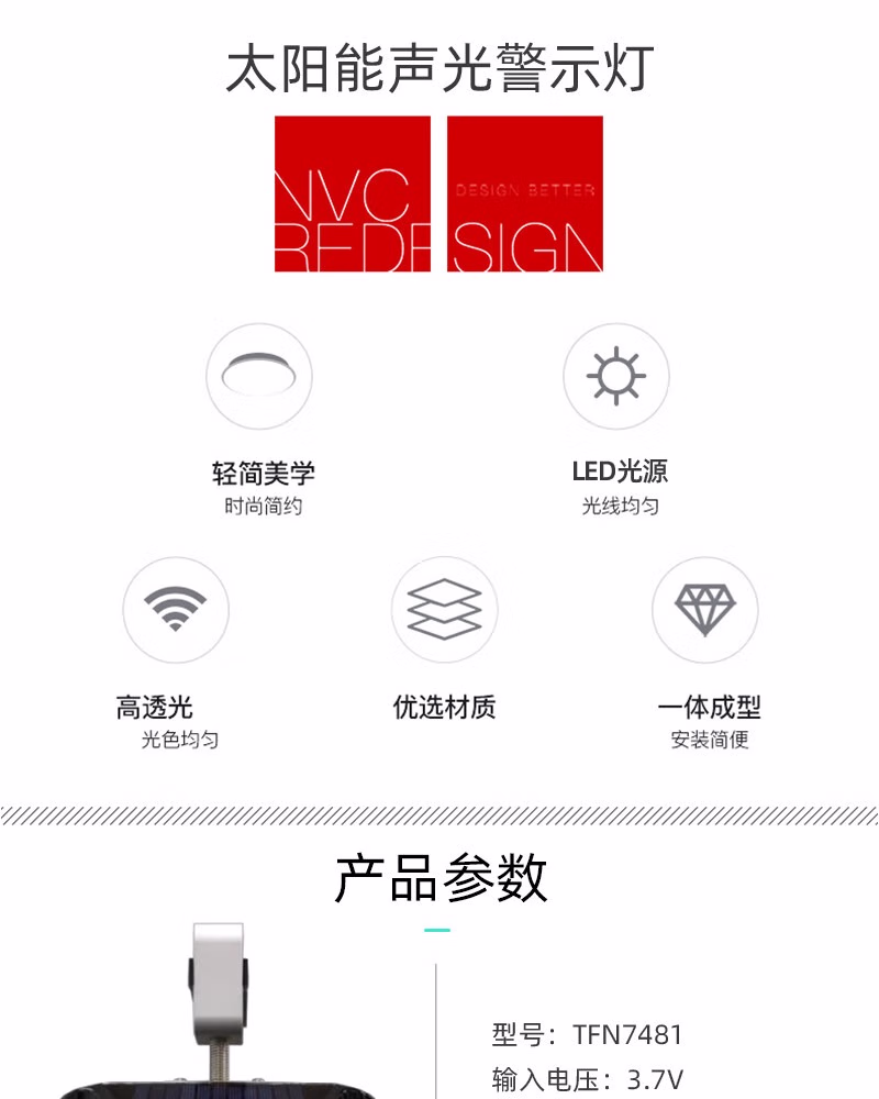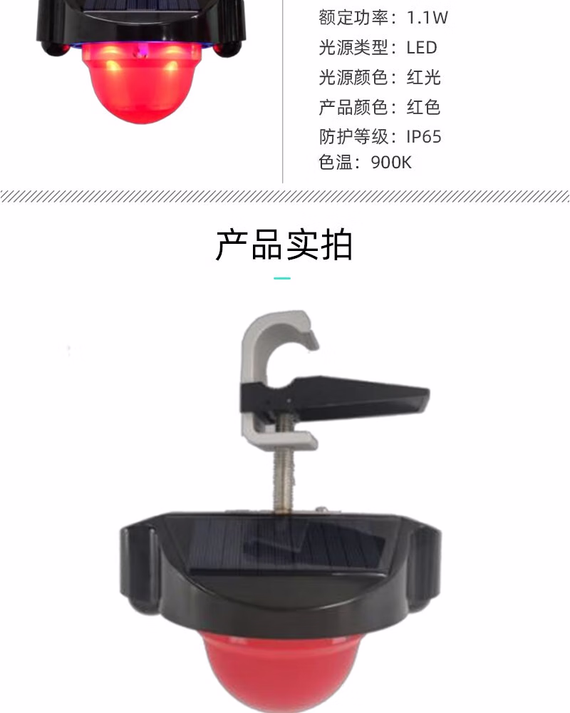 吉特(GT) TFN7481 1.1W,IP65,DC3.7V,红光,900K,LED 太阳能声光警示灯 (计价单位:盏) 红色