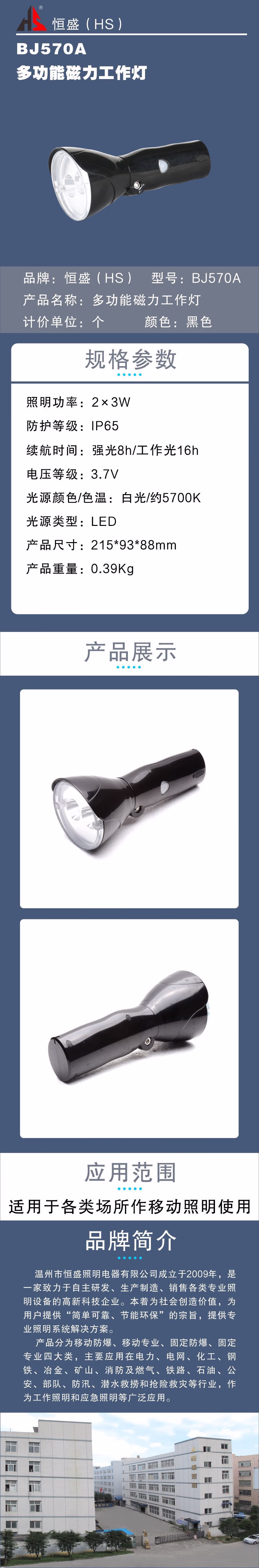 恒盛(HS) BJ570A 2×3W、IP65、续航时间:强光8h/工作光16h、电压等级:3.7V、白光/约5700K、LED 多功能磁力工作灯 (计价单位:个) 黑色