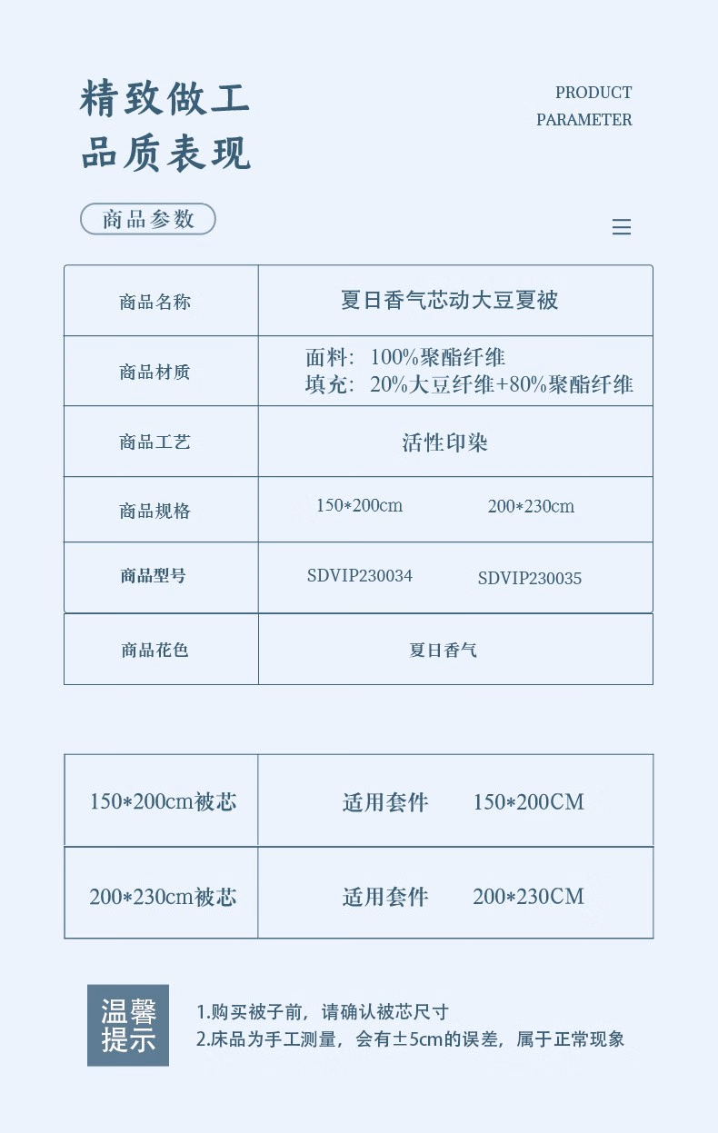 • 商品名称:婵思(CHANSI)夏日香气芯动大豆夏被 夏日香气 150*200cm/SDVIP230034
