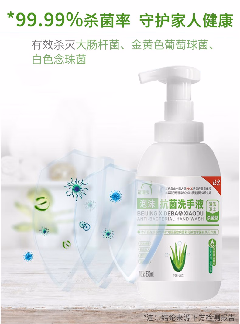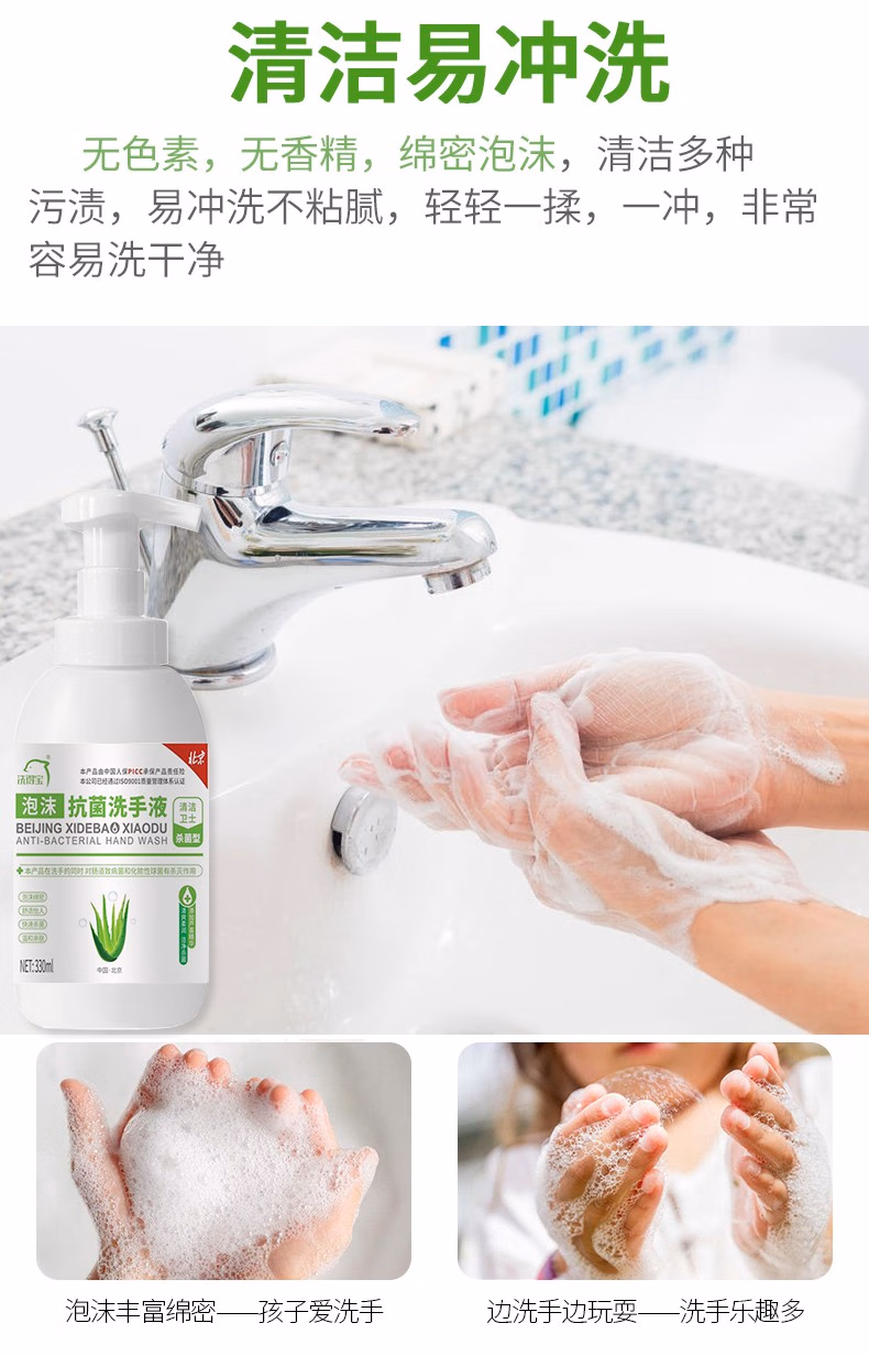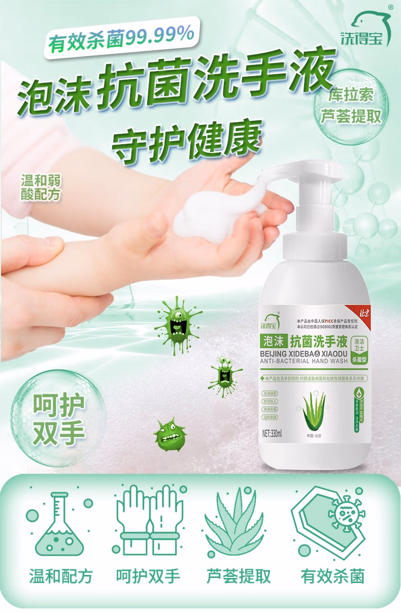 • 商品名称:洗得宝抗菌泡沫洗手液330ml/瓶滋润保湿泡沫细腻