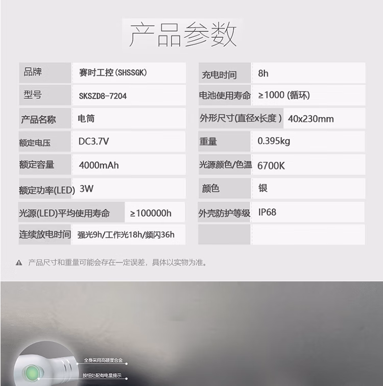 赛时工控(SHSSGK) SKSZD8-7204 DC3.7V 3W 6700K 电筒 (计价单位:个) 银