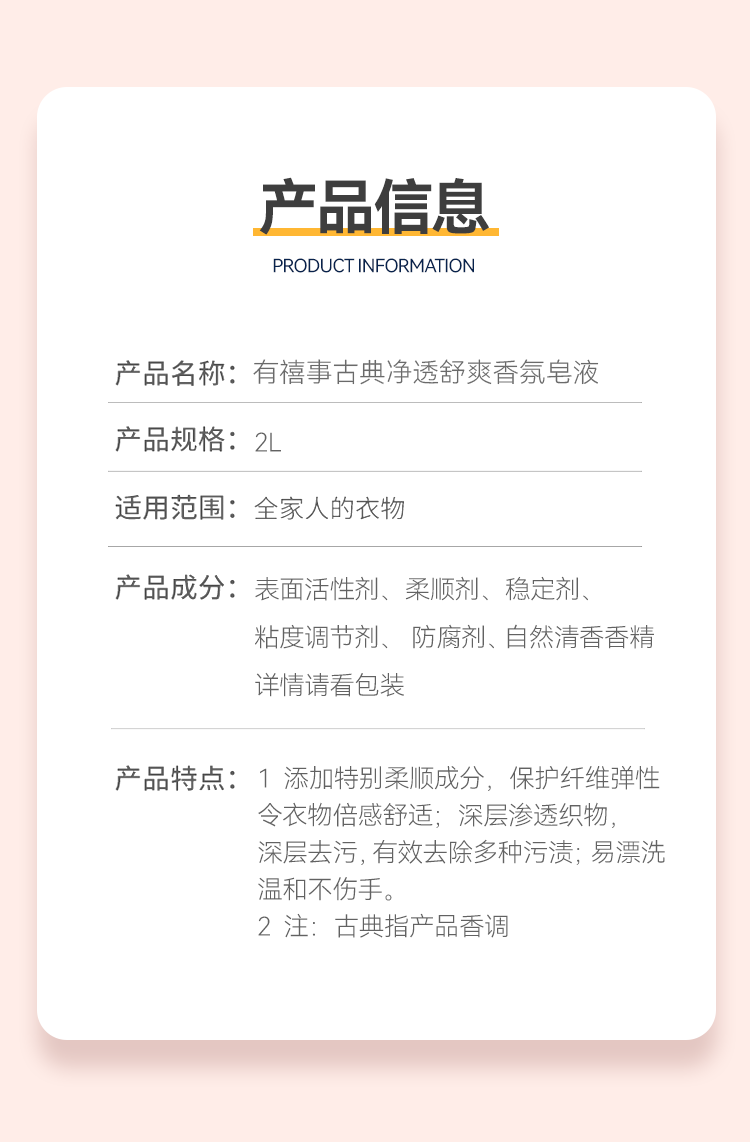 • 商品名称:有禧事古典净透舒爽香氛皂液