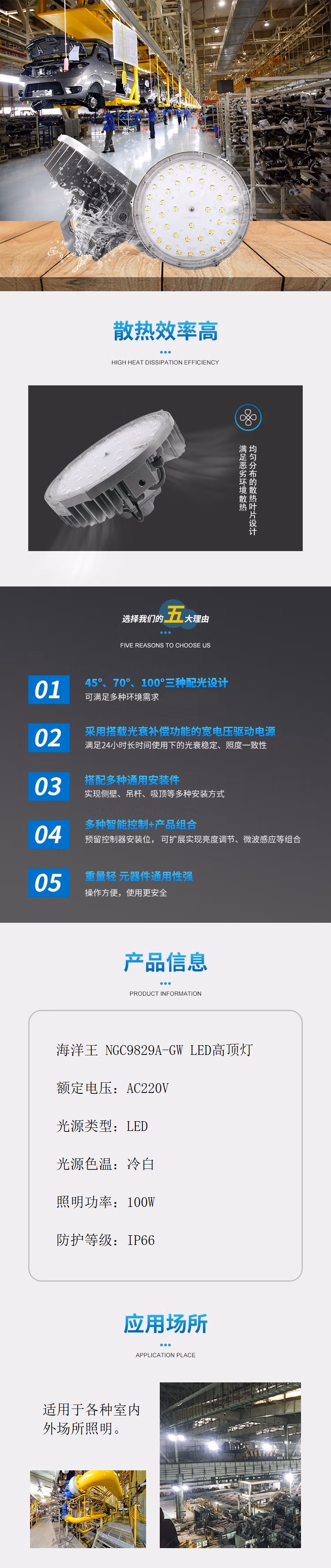 海洋王 NGC9829A-GW 100W、IP66、AC220V、冷白 LED高顶灯 (计价单位:个) 银色