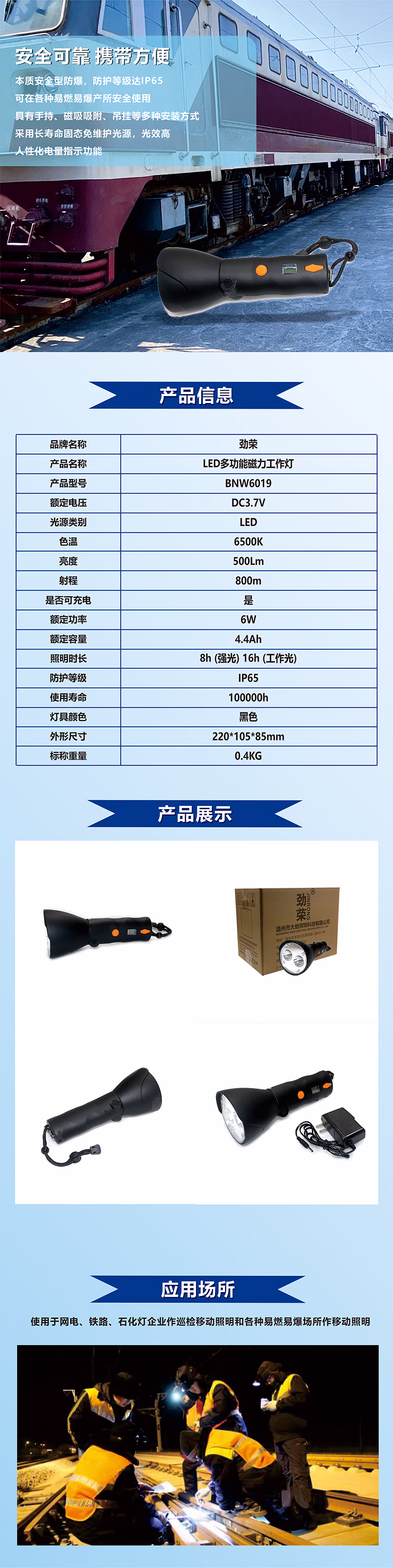 劲荣 BNW6019 6W IP65 DC3.7V/4.4Ah 强光:8h 工作光:16h 色温6500K LED多功能磁力工作灯 (计价单位:个) 黑色