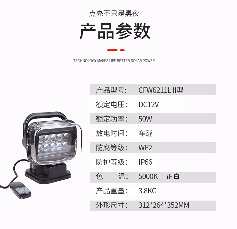 旭升(CXS) CFW6211L II型 50W IP66 DC12V 白光 色温5000K 车载遥控探照灯 (计价单位:盏) 黑色