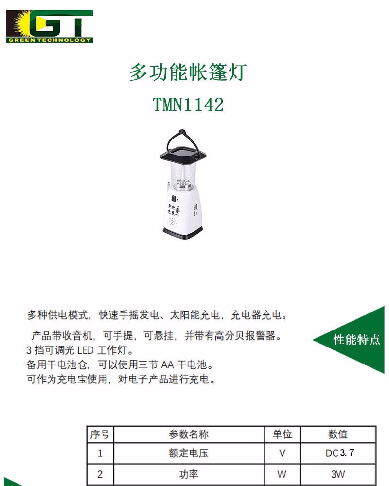 • 商品名称:吉特(GT) TMN1142 3W 多功能帐篷灯 (计价单位:盏) 白色 主机