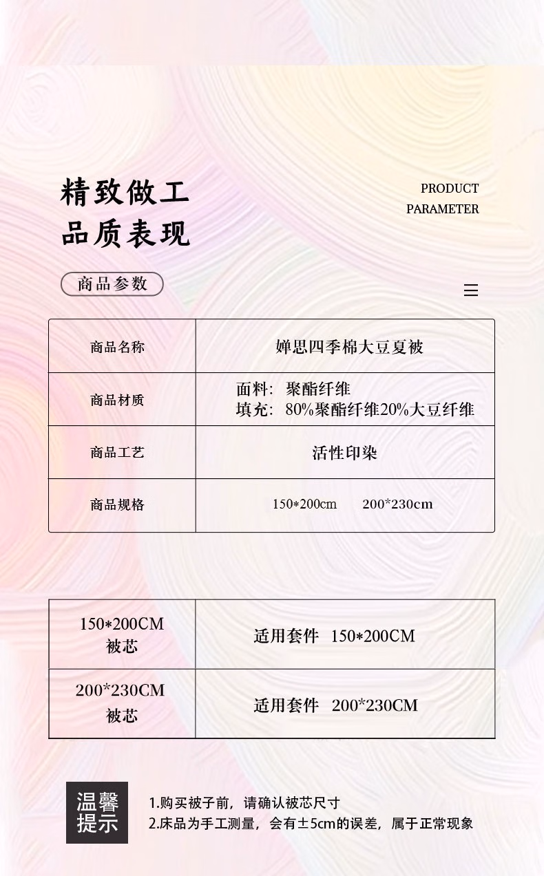 • 商品名称:婵思(CHANSI)四季棉蜻涩系列大豆夏被 蜻涩豆沙 150*200cm/BZ0TDC2201061