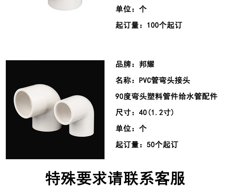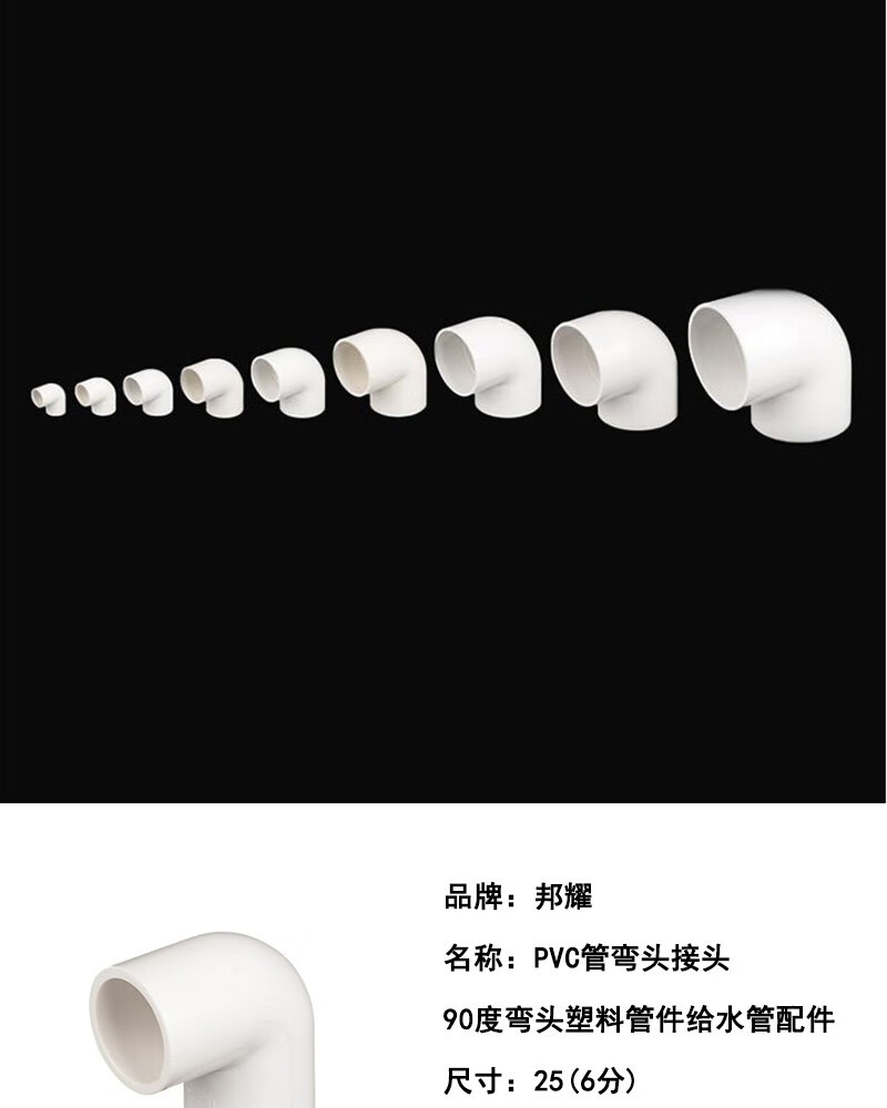 邦耀 PVC管弯头接头90度弯头塑料管件给水管配件 25(6分)100个起订