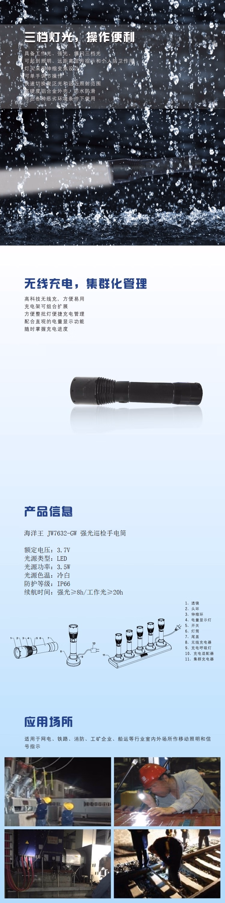 海洋王 JW7632-GW 3.5W IP66 续航时间强光≥8h/工作光≥20h 3.7V 冷白 LED 强光巡检手电筒 (计价单位:个) 黑色