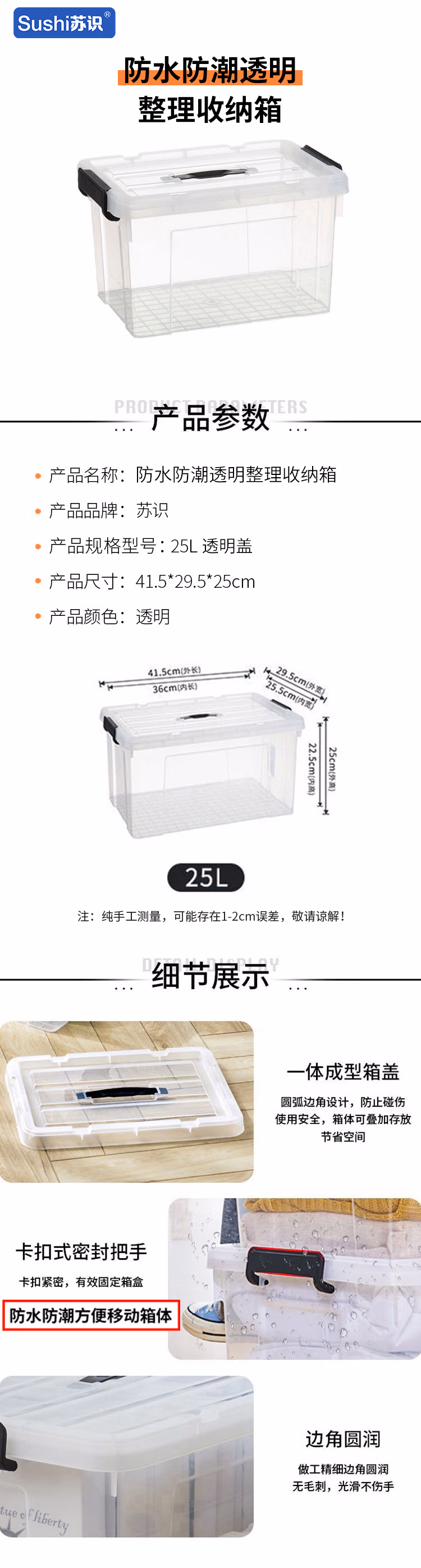 苏识 25L 透明盖 防水防潮透明整理收纳箱 (计价单位:个) 透明