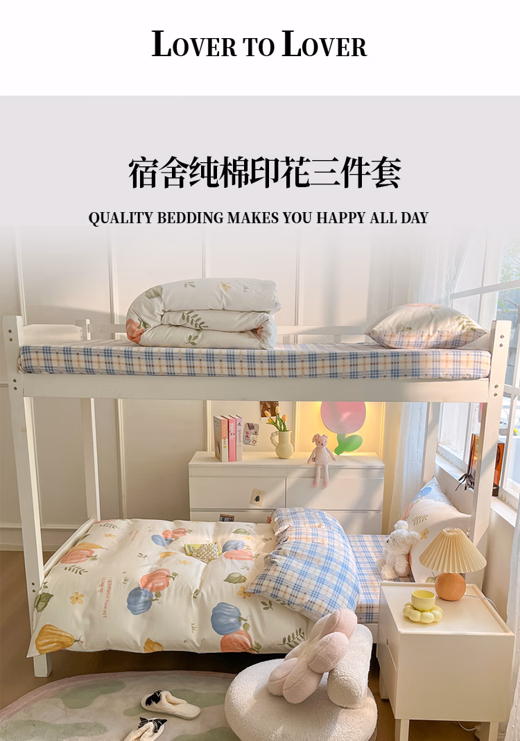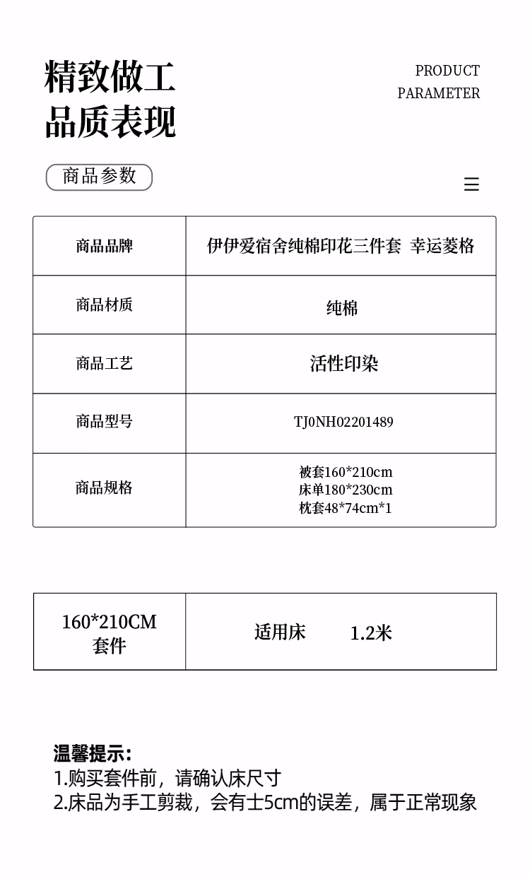 伊伊爱 TJ0NH02201489 /160*210cm宿舍纯棉印花三件套 床上套件 (计价单位:套) 幸运菱格