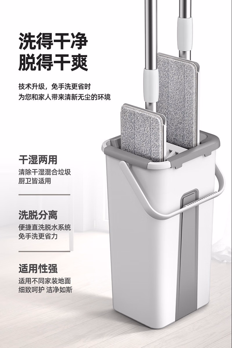 海亚森 TK-2024 白色加厚桶+1拖杆+2拖布 拖把套装 1.00 把/套 (计价单位:套) 米白色