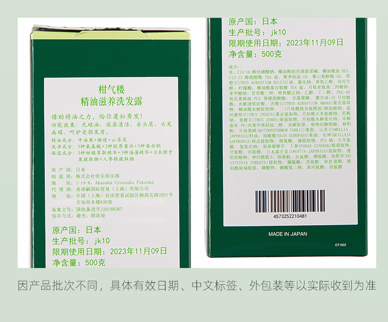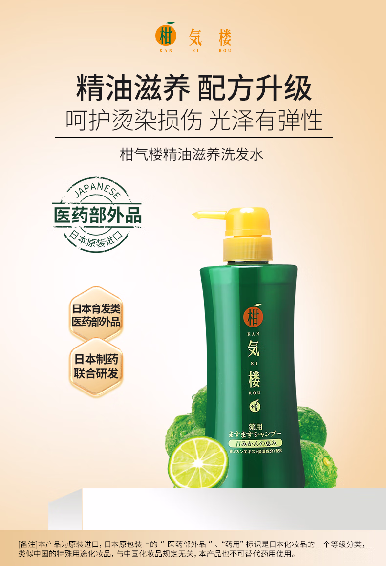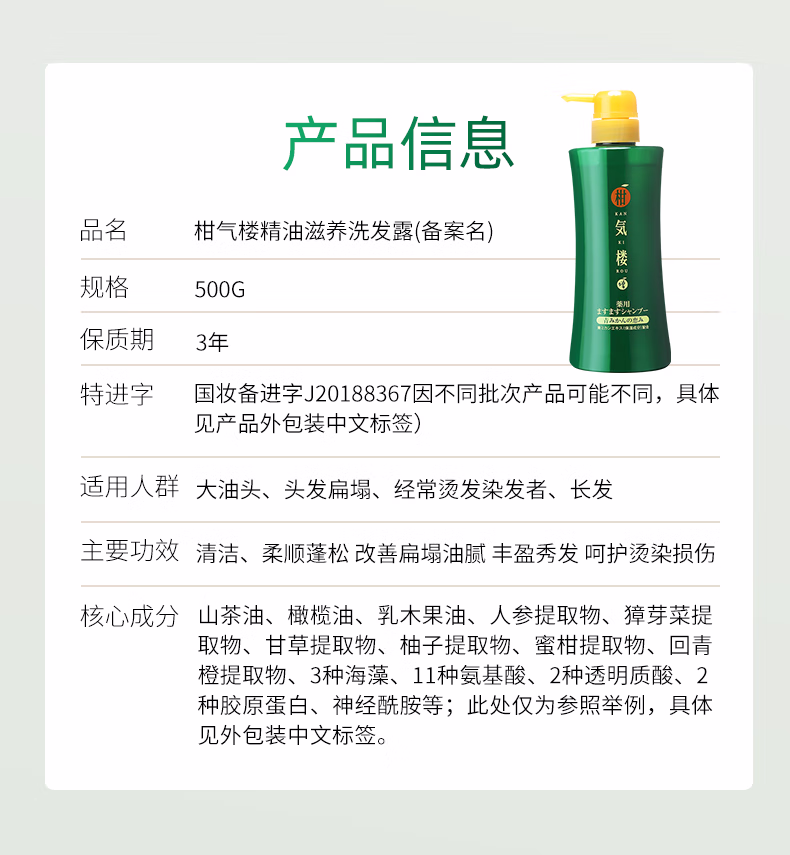 • 商品名称:柑气楼 KAN KI ROU日本精油滋养洗发水滋润蓬松护发洗头膏烫染干枯毛躁头发用洗发露 500g【烫染细软干枯分叉护理】