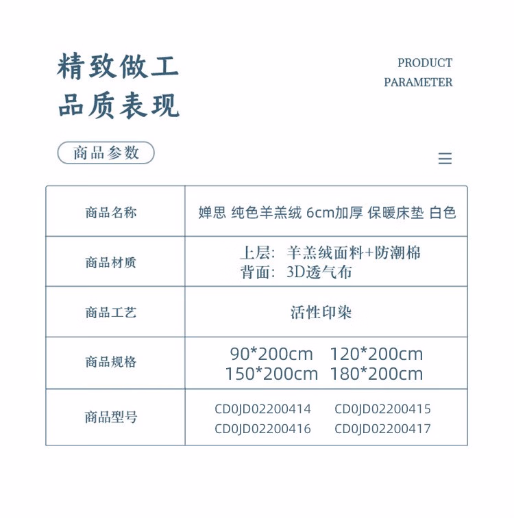 • 商品名称:婵思纯色羊羔绒6cm加厚保暖床垫 白色 90*200cm/CD0JD02200414