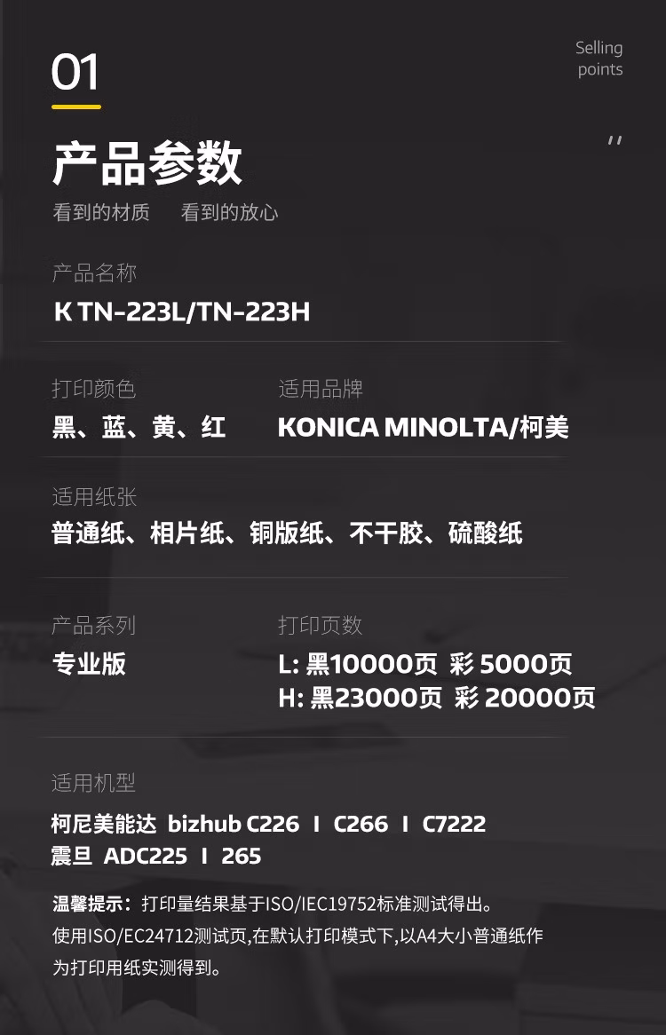 科思特 TN223L/ADT225L 专业版10000页适用柯尼卡美能达 bizhub C226/C266/C7222/震旦ADC225/265 粉盒 (计价单位:只) 黑色