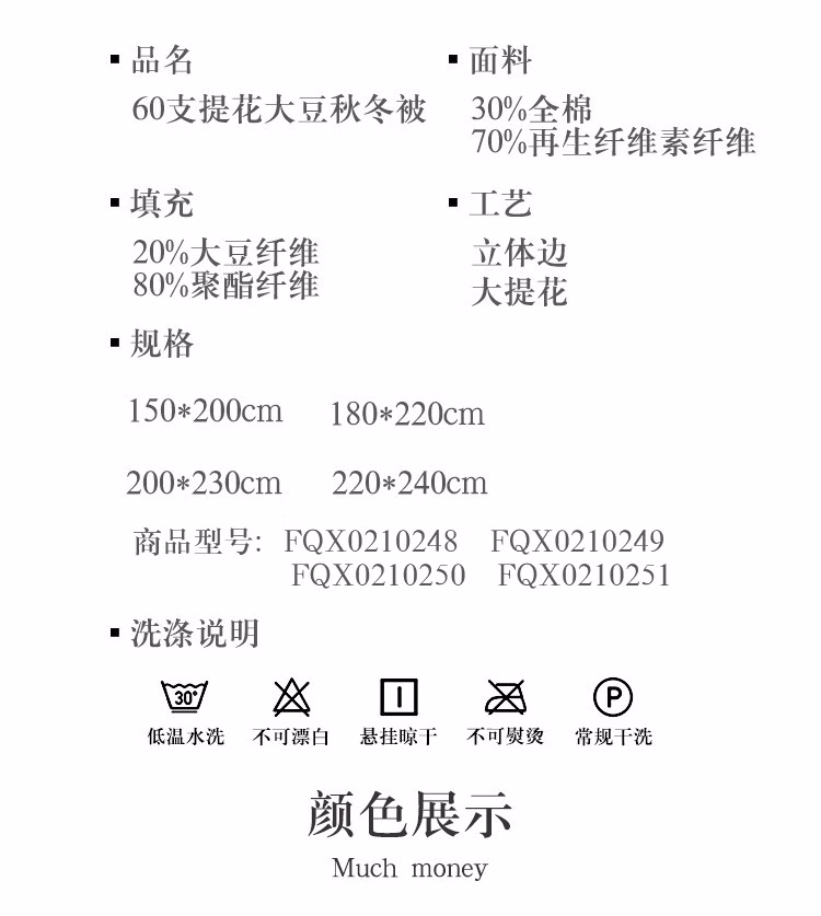 • 商品名称:弗切尔珀榕 贡缎60支大提花大豆秋冬被 氧肤灰 200*230cm/FQX0210250