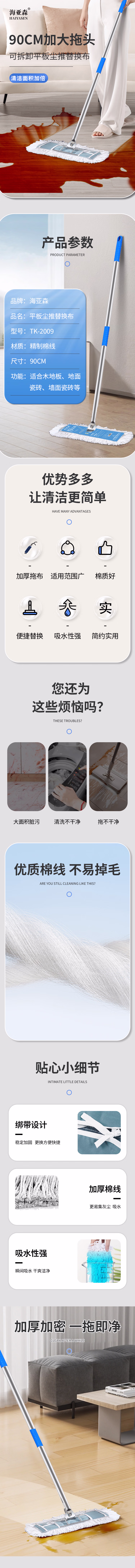 海亚森 TK-2009 90CM 平板尘推布头 1.00 把/个 (计价单位:个) 蓝色