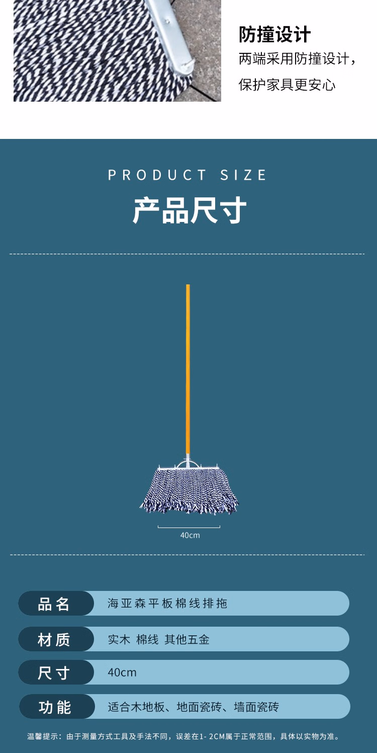 海亚森 TK-2003 平板棉线排拖 铁头加固40cm宽 10把/捆(单位:把)