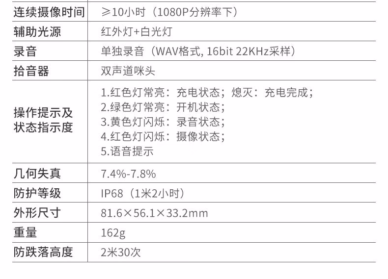 • 商品名称:警翼X8执法记录仪1440P高清红外夜视防爆现场执法仪安霸芯片IP68防水 128G
