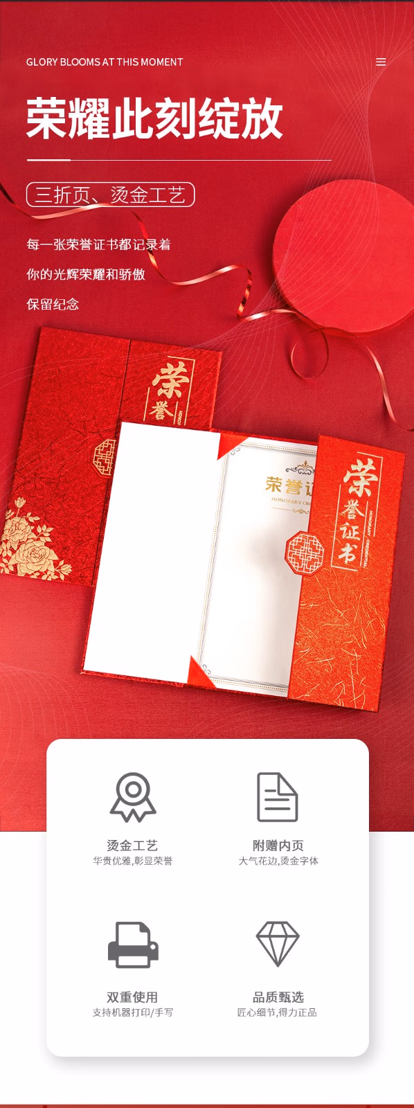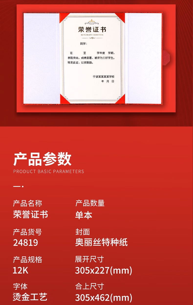 • 商品名称:得力(deli)企业聘请绒面荣誉证书颁奖得奖获奖状外壳聘书 6K聘书(215*295mm) 7597