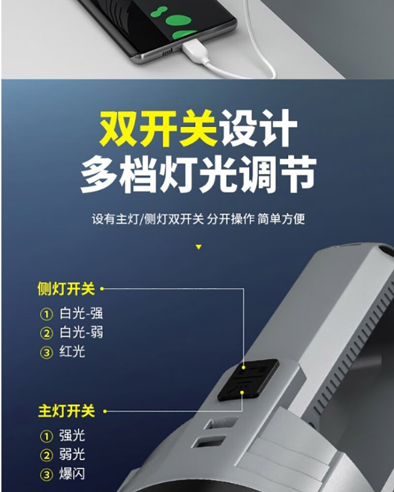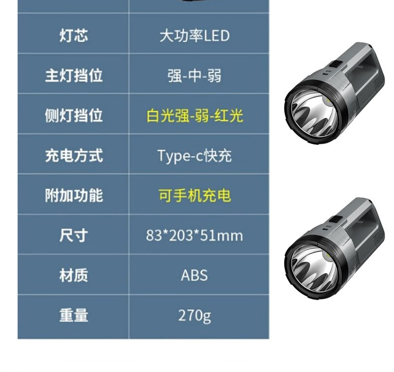 晟泰邦 led强光手电筒 多功能高亮远射应急灯循环充电手提探照灯 单位:个