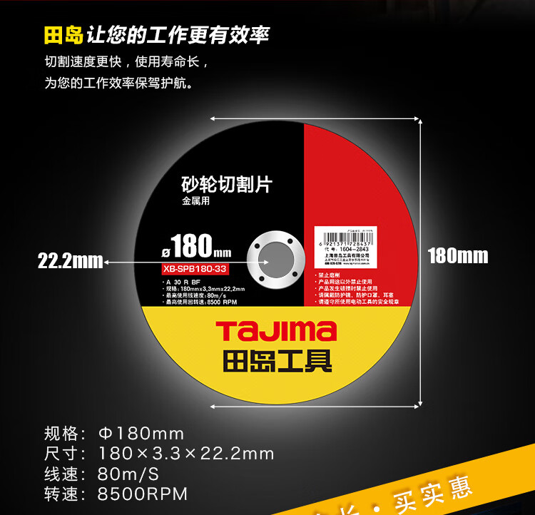 田岛(TaJIma)砂轮切割片 180X3.3X22.2XB 1604-2843