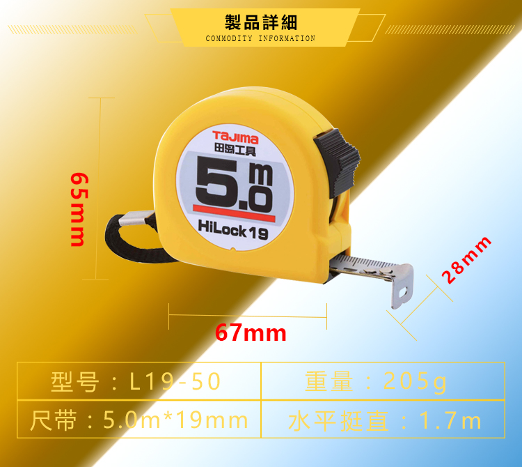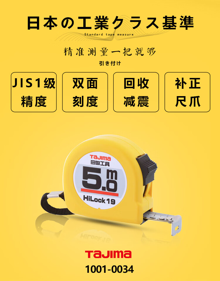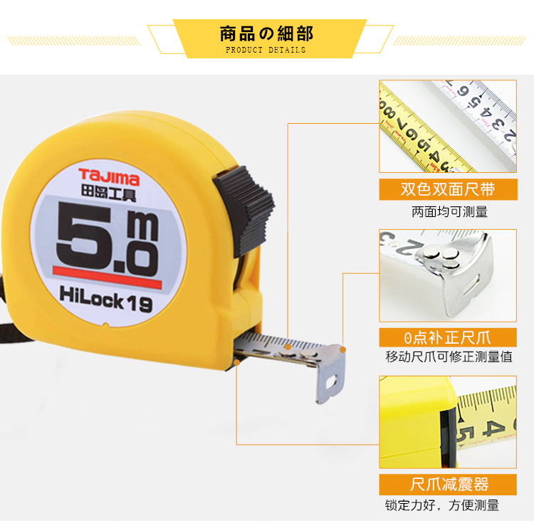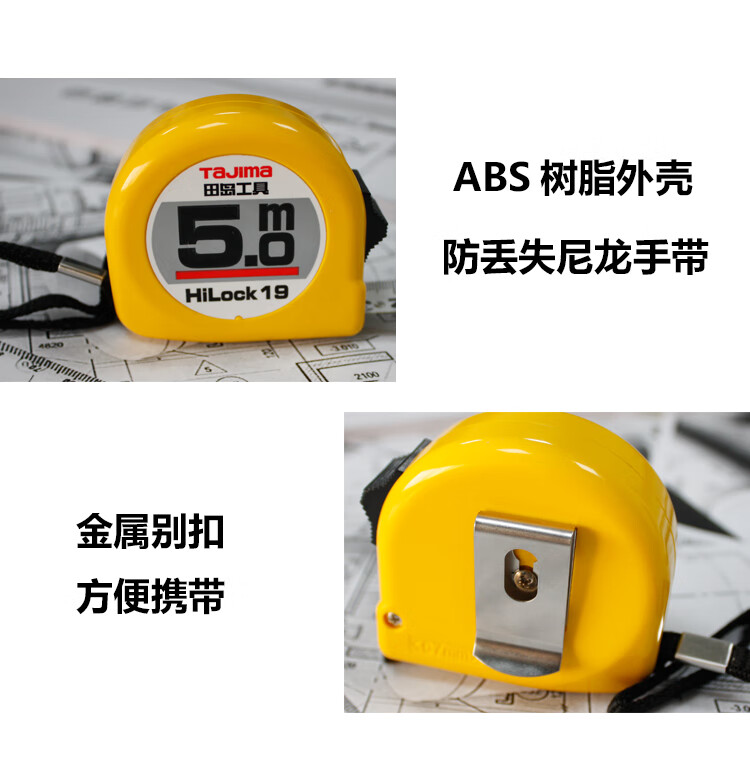 田岛(TaJIma)长5米钢卷尺盒尺米尺木工尺伸缩尺公制尺带正反面刻度19mm宽L19-50 1001-0034