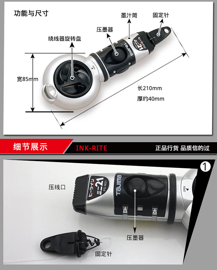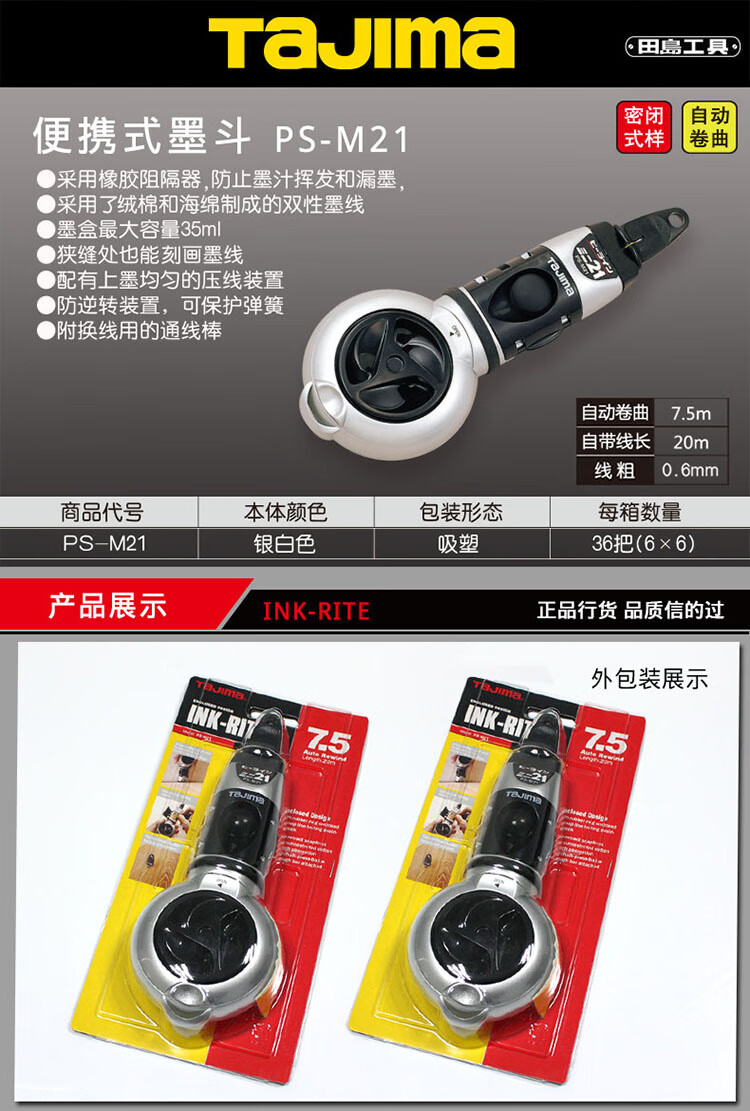 田岛(TaJIma)墨斗20米线自动回线不漏墨PS-M21 1008-0205