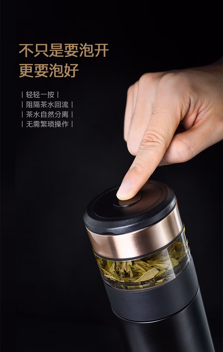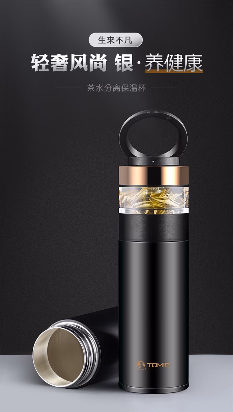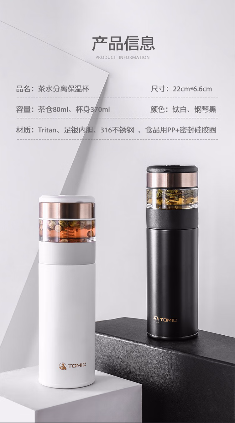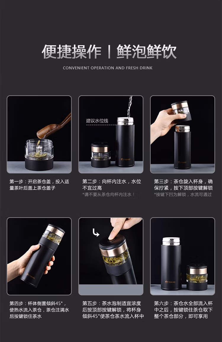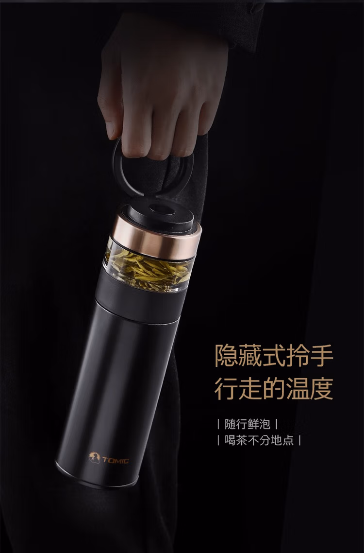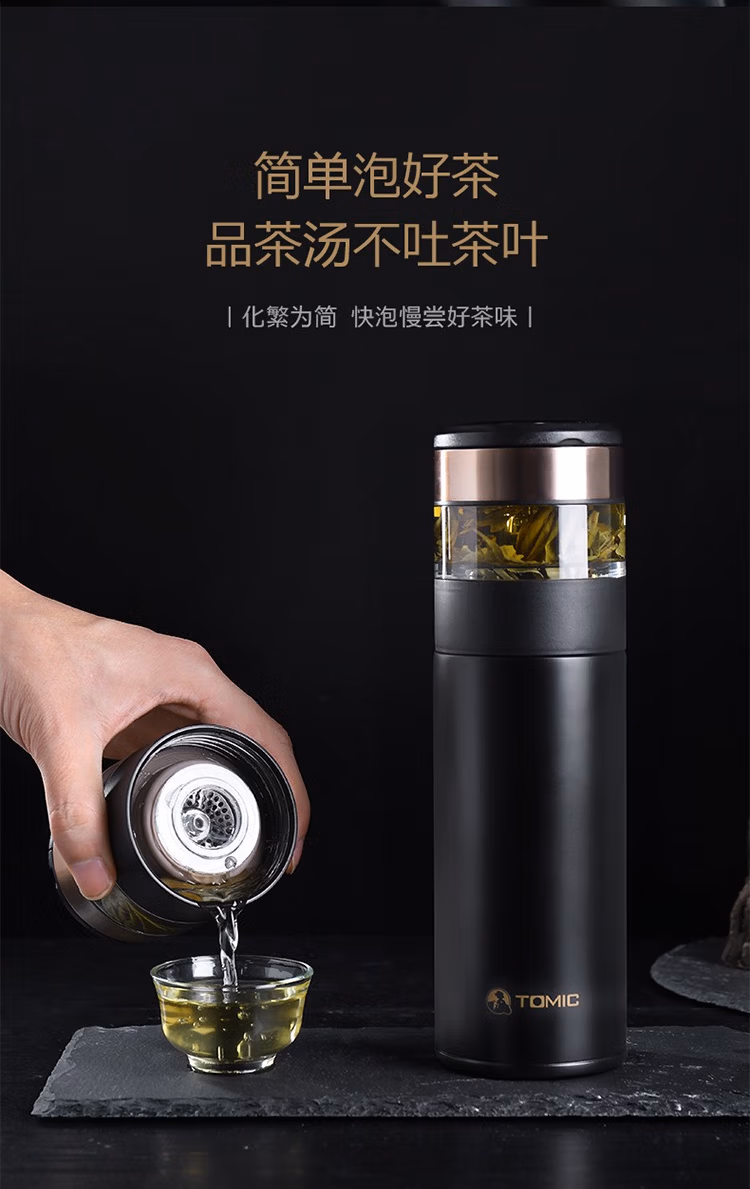 特美刻(TOMIC) TW60051S 370ml 茶水分离保温杯(银内胆) (计价单位:个) 黑色