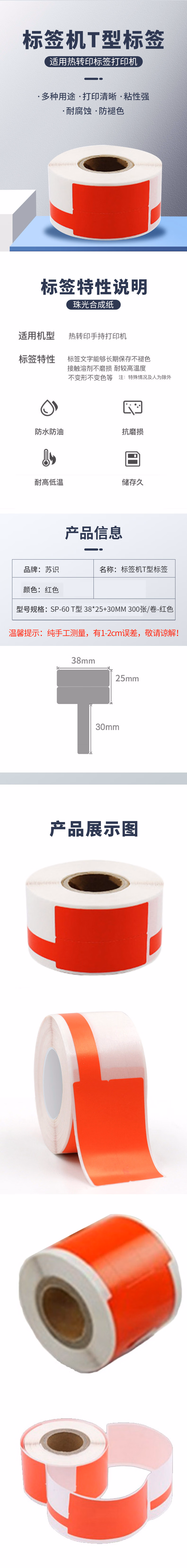 苏识 SP-60 T型 38*25+30mm 300张/卷-红色 标签机T型标签 1.00 盒/卷 (计价单位:卷) 红色
