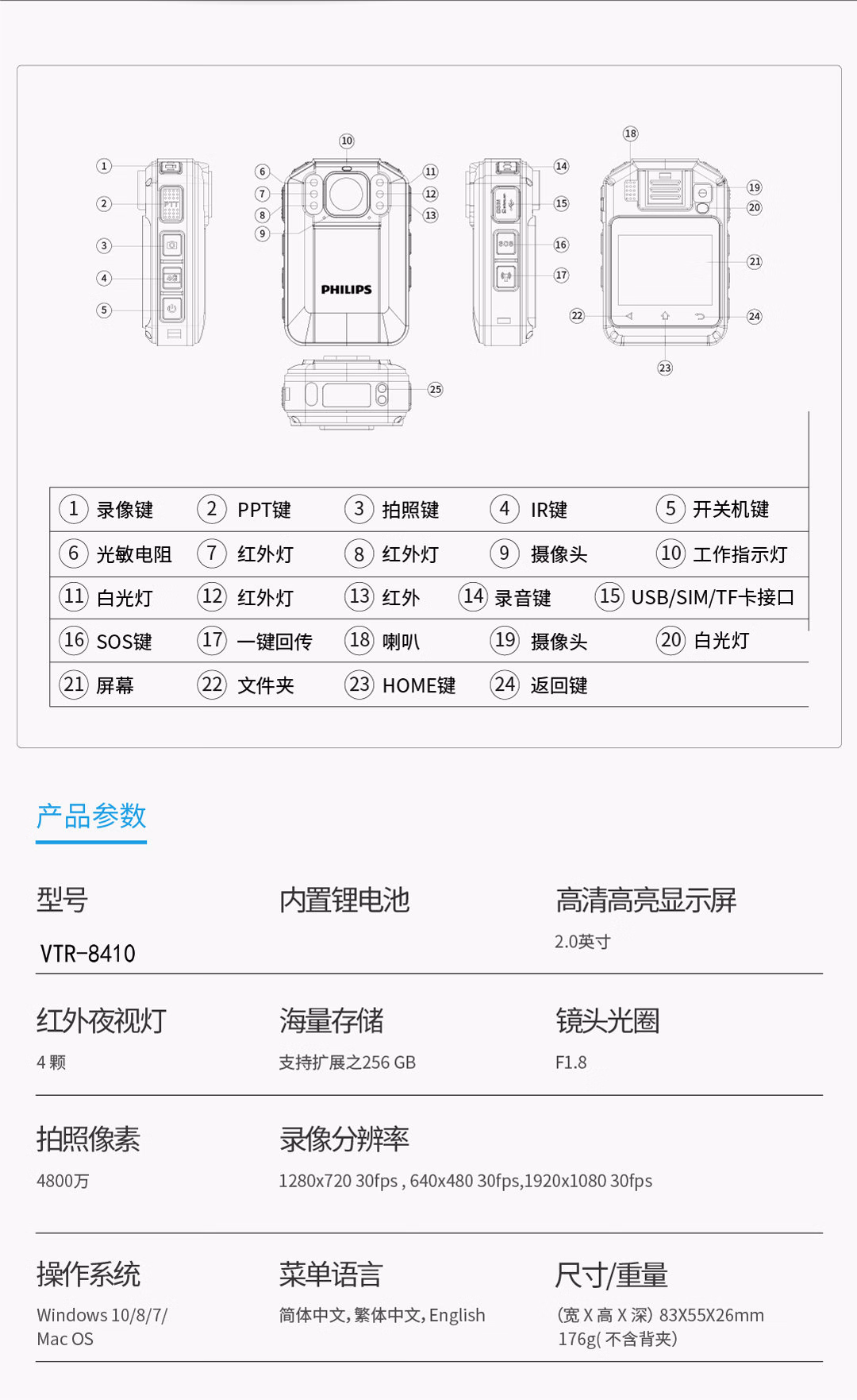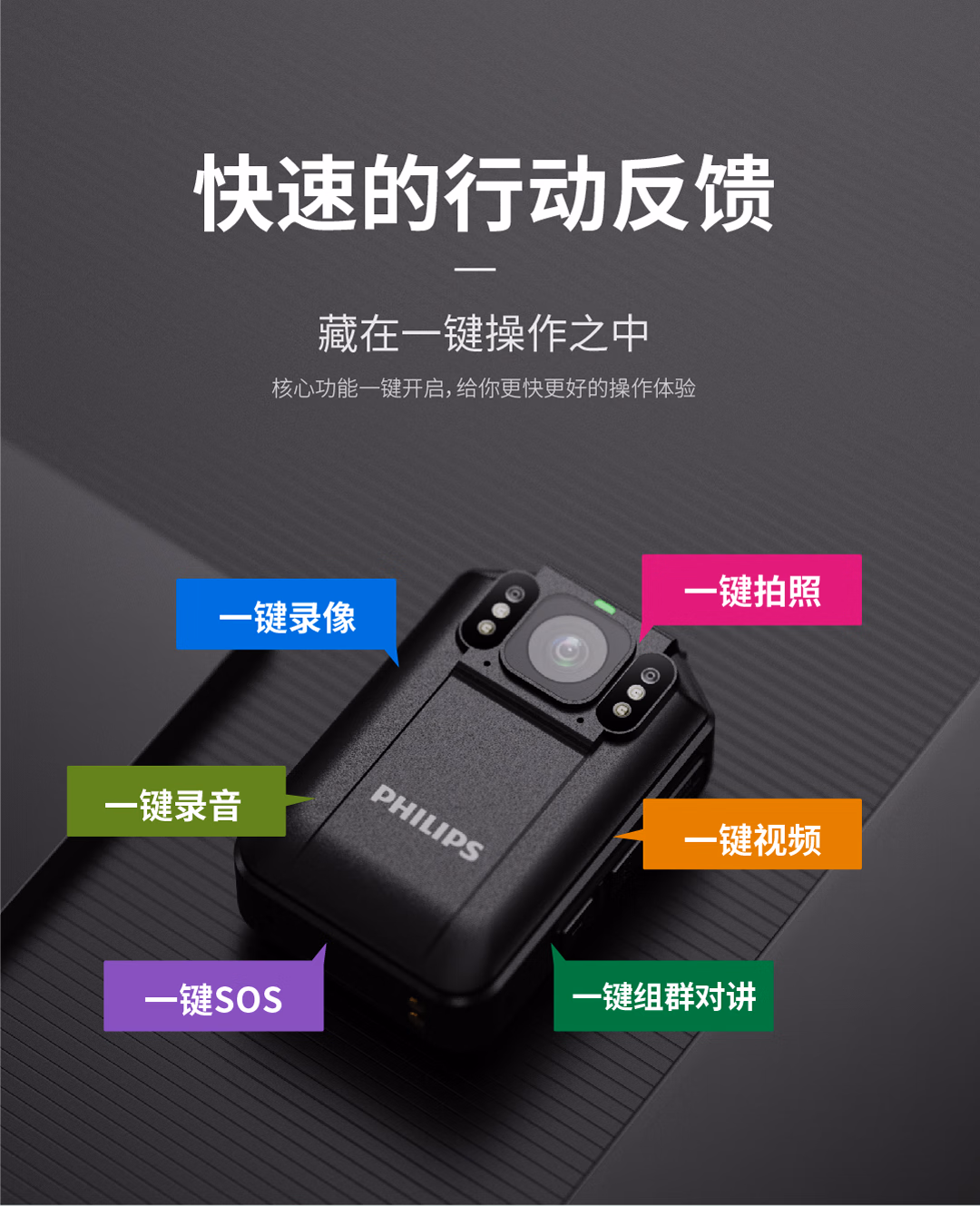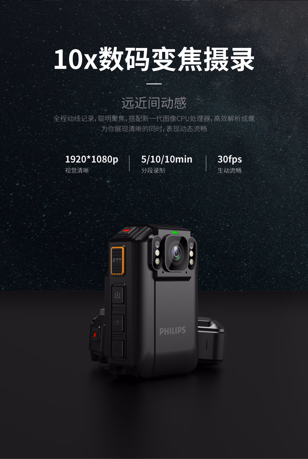 飞利浦(Philips) VTR8410 北斗+GPS定位 4G高清便携式佩带 摄像装置 (计价单位:台) 黑色