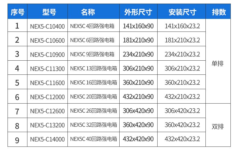 正泰 CHNT NEX5-C 强电箱家装断路器空开配电箱 6回路-明装
