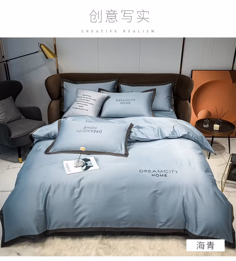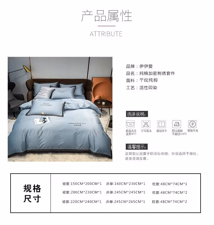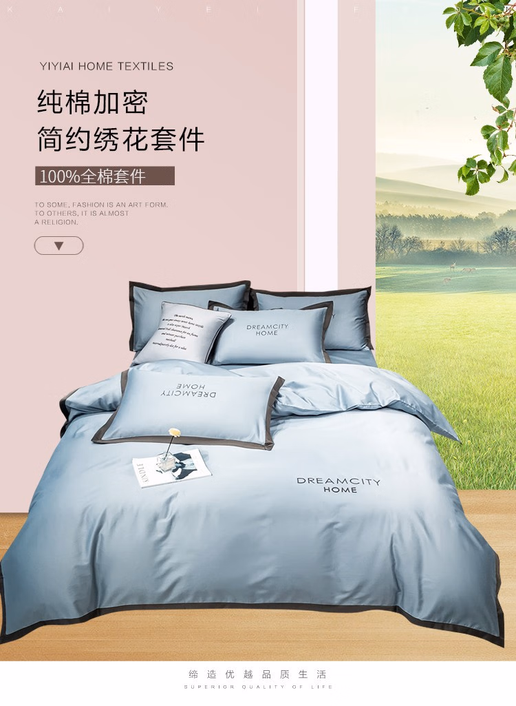 伊伊爱 TJNH02000331/ 150*200cm 全棉绣花拼角三件套 (计价单位:套) 黛蓝