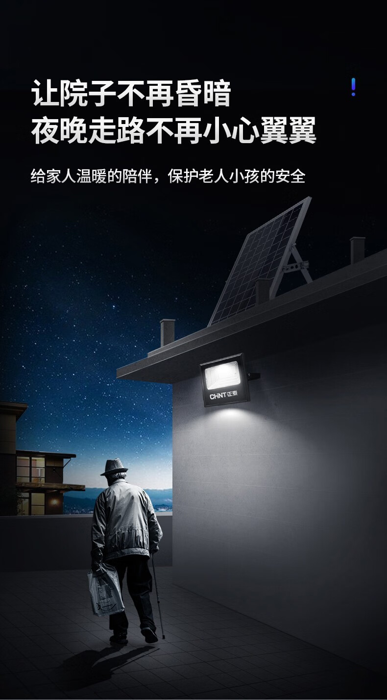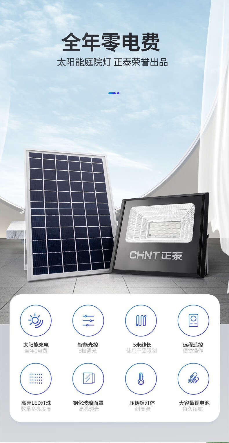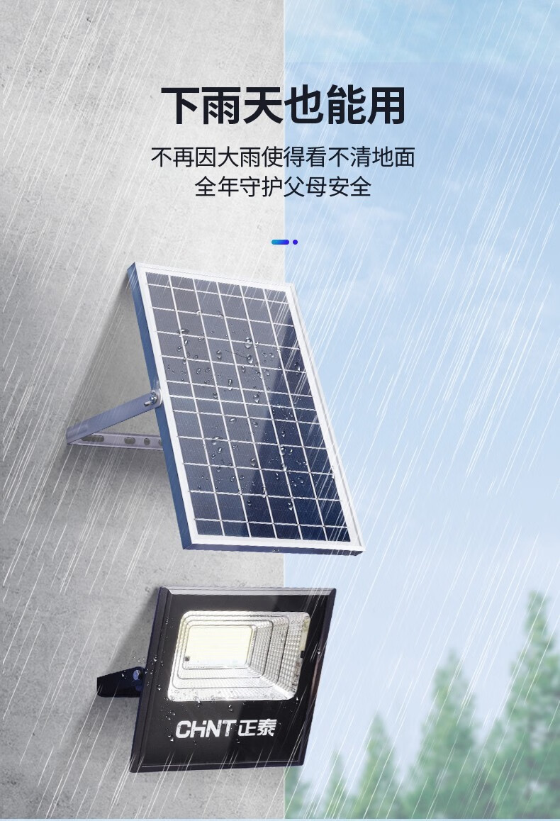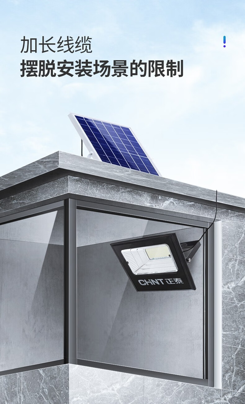 正泰(CHNT) 太阳能灯庭院灯 光控路灯户外led投光灯新农村家用大功率泛关灯感应工厂车间照明灯 【力荐款】100WS+5米连接线+100平 正泰太阳能庭院灯 单位:个