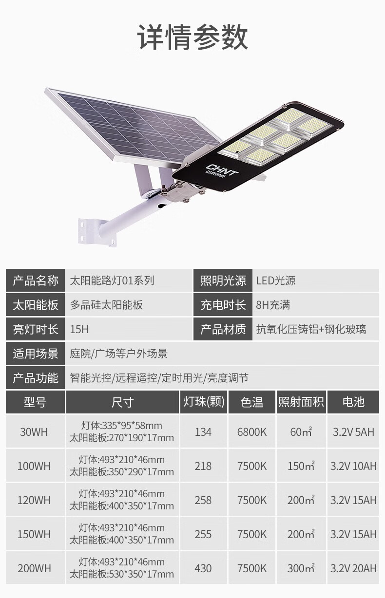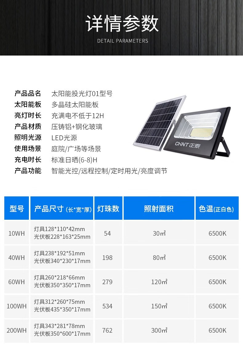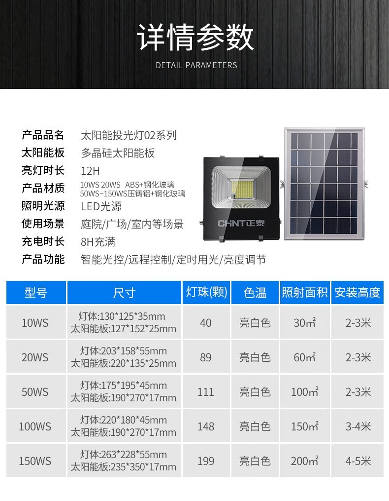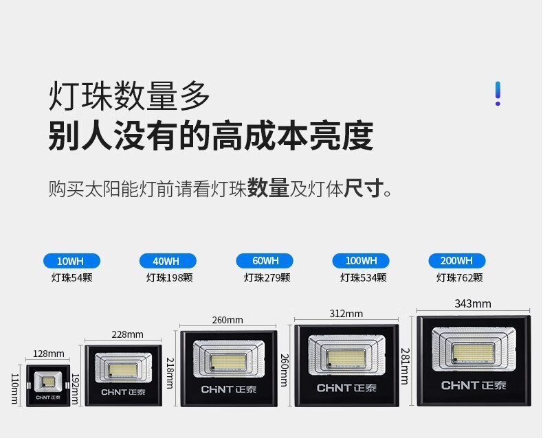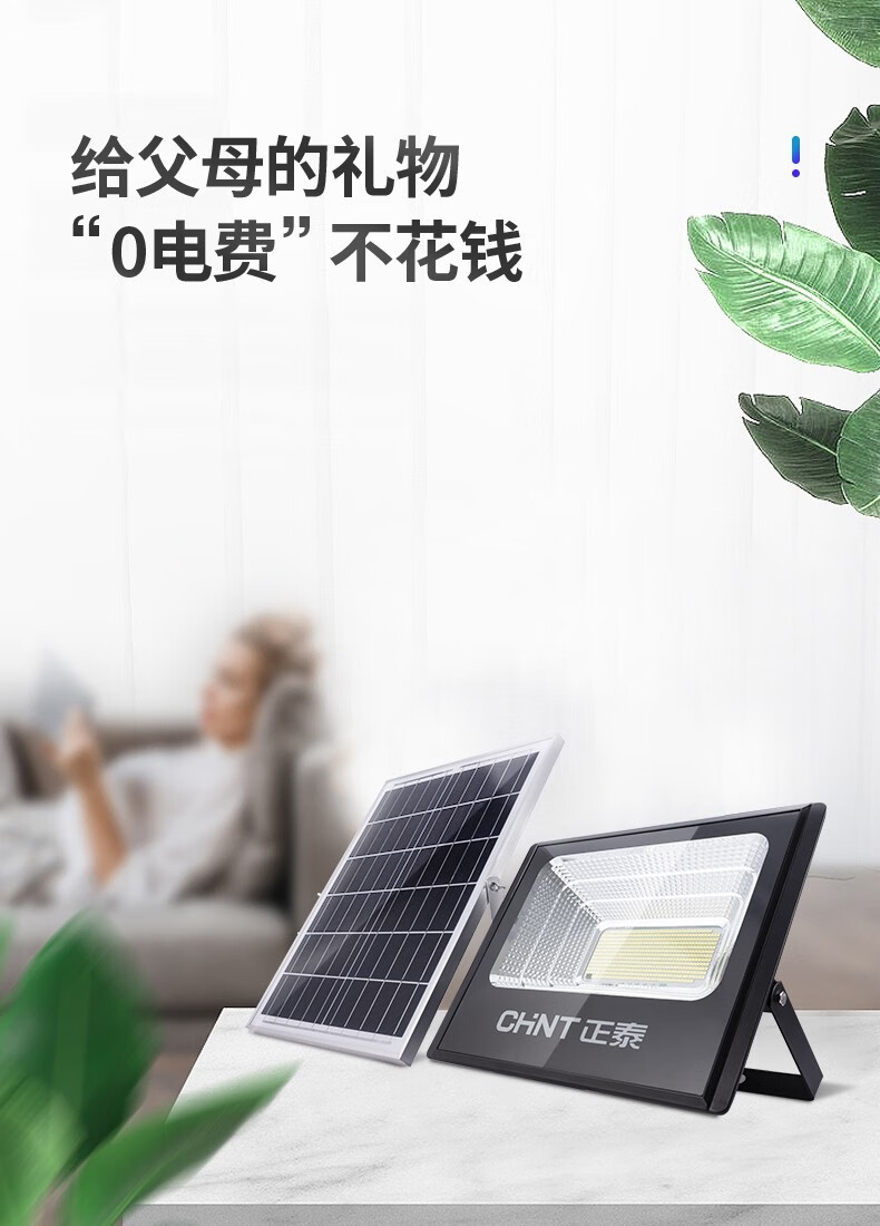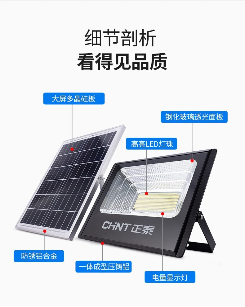 正泰(CHNT) 太阳能灯庭院灯 光控路灯户外led投光灯新农村家用大功率泛关灯感应工厂车间照明灯 【力荐款】100WS+5米连接线+100平 正泰太阳能庭院灯 单位:个