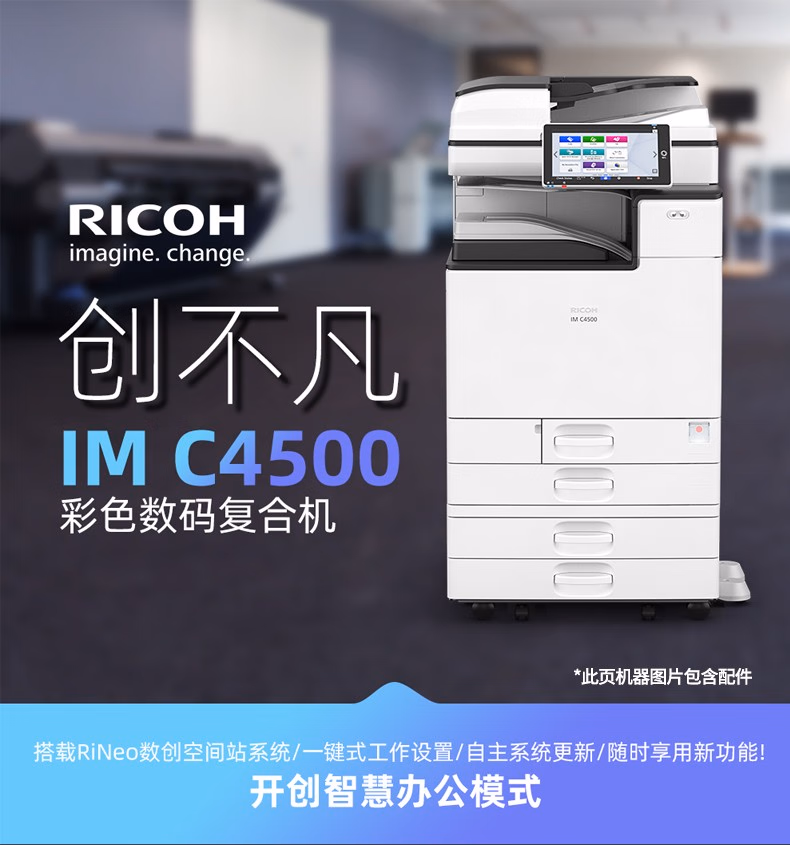 • 商品名称:理光(Ricoh) IM C3000/C3500/C4500 彩色多功能数码复合机A3一体机智能办公 IM C4500 主机+输稿器+四纸盒