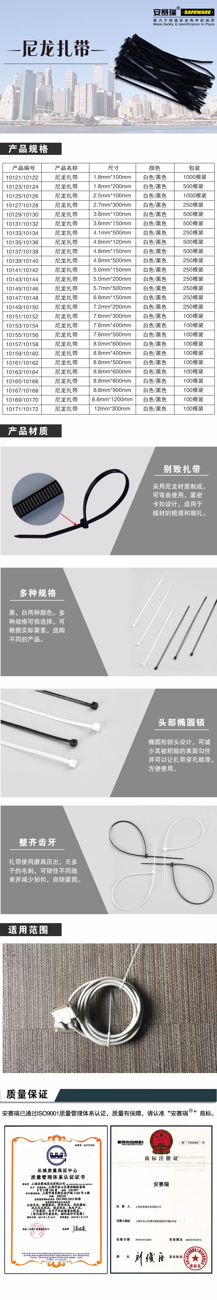 安赛瑞 10162 8.8*500mm 100根/包 尼龙扎带 (计价单位:包) 黑色